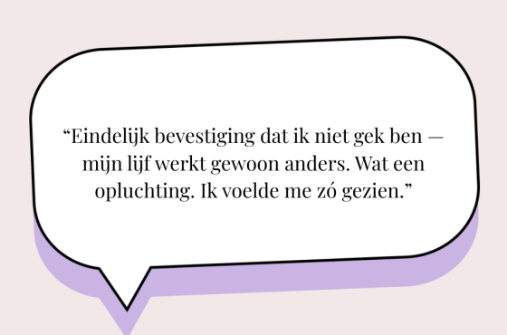 Geen hysterie meer rond eten, geen schuldgevoel na elke hap. Je begrijpt je lijf beter, je voelt weer grip, en je hoofd wordt rustiger. Dat ‘altijd aan staan’-gevoel? Mag uit.